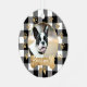 Add a cosy and warm charm to your Christmas tree with our Pet photo metal ornament featuring a cosy and warm black and white buffalo plaid pattern background. Circle photo frame with a festive faux gold bow and bone. Customise with your pets name & photo. Designed by Moodthology Papery