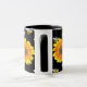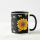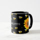 Decorated with happy, smiling yellow and black bumble bees and large watercolored sunflowers. A chic black background. Personalise and add a name.