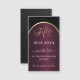 A magnetic Save the Date card for a 50th birthday party. A black and burgundy background, decorated with a faux gold arch. Personalise and add a date and your name. The text: Fifty and Save the Date is written with a large trendy hand lettered style script.