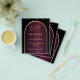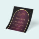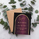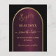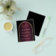 A Save the Date for a 80th birthday party. A black and burgundy background, decorated with a faux gold arch. Personalise and add a date and your name. The text: Eighty and Save the Date is written with a large trendy hand lettered style script.