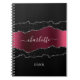 Black, burgundy and faux silver, agate, marble stone print as background. Personalise and add your name and a year. The name is written with a modern hand lettered style script.
