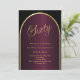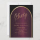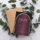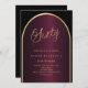 An elegant 60th birthday invitation. A black and burgundy background with a golden arch on the front.
