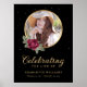 Elegant black, burgundy and gold floral funeral photo welcome sign featuring a gold photo frame adorned with burgundy red roses.