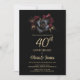 Black Burgundy Grey Floral 40th Anniversary Invitation