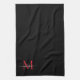 Modern Stylish Elegant Black Burgundy Maroon Red Monogram Script Name Kitchen Towel