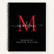 Black Burgundy Red Monogram Script Name Recipe Notebook