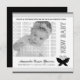 Black Butterfly birth announcement square photo card features an elegant black butterfly with spread wings and a pair of curly antennae against a white background with black borders, and is ideal to announce the arrival of your new baby. Click below for the matching square envelope. © Morning 6