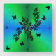 black Butterfly on blue green Rainbow Square Wall Clock
