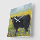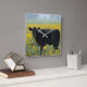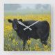 Black Calf in a Field of Sunflowers Square Wall Clock