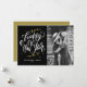 Black Calligraphy and Wreath New Year Photo Holiday Card