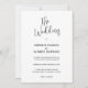 Whimsical minimalistic modern, white background, with customisable black calligraphy, elegant wedding invitation. The white background with customisable black script typography evokes a feel of classic black-and-white elegance.