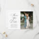 lovely white script lettering black wedding save the date wedding card. The text and colors can be edited.