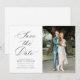 Black calligraphy script wedding save the date