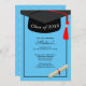 Black Cap Diploma Modern Sky Blue Graduation Party Invitation