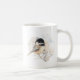 A beautiful black-capped chickadee songbird painted in watercolor with blue flowers painted by artist Jennifer Steffen.