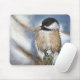 Cute Winter Black Capped Chickadee Mouse Pad. The design on this poster is of an adorable winter chickadee painting. Perfect for the nature and bird lover! This artwork is also available on other products for mixing and matching! Art from JennsEmporium.