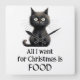 Black Cat All I Want for Christmas is Food Square Wall Clock
