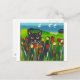 Black cat amongst tulips postcard