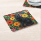 Black Cat and Colourful Folk Art Flowers Square Paper Coaster