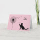 Black cat silhouette on pink and white pin dot background with dandelion for general birthday.