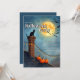 Set the tone for a spooky-fun night with this Halloween party invitation featuring a silhouetted black cat perched on a chimney, a glowing full moon, fluttering bats, and cosy string lights above a row of pumpkins. The design blends eerie and enchanting—perfect for family bashes or adults-only costume parties.
