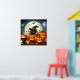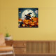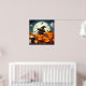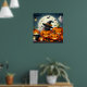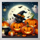 Black Cat and Ghost in a Pumpkin Patch with Full Moon, Cauldron and Bats Halloween Poster