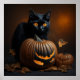 Black cat and a spooky upside down face pumpkin Halloween art.