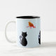 Black Cat and Red Bird Two-Tone Coffee Mug