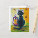 Black cat and red lantern lamp postcard