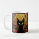 A cute black cat with large yellow eyes and red roses on a gold and brown mott;ed background