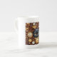 This beautifully designed mug features a collection of nine round, vibrant illustrations that add a touch of whimsy and charm. Each image showcases colorful, playful scenes including a black cat, a lucky Maneki Neko, strawberries, sweets, and magical motifs. The intricate details and rich, warm color palette make this mug stand out, offering a delightful visual journey with every sip.