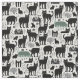 Black cat botanical white pattern modern boho fabric for DIY and crafts