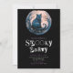 At the top of the invitation, a beautiful scene unfolds with a black cat perched elegantly on a tree branch. Surrounded by delicate leaves, twisting branches, and vibrant flowers, the cat adds a touch of nature to the spooky season. In the background, a subtle full moon peeks through, casting a soft glow and adding an enchanting element to the design.