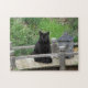 This puzzle is perfect for cat lovers. It shows a black cat with yellow eyes sitting next to a lantern on a garden bridge with early spring flowers around him. Blackie, the cat, wakes up each morning and goes over to this little bridge and sits there for quite some enjoying the new day.