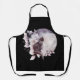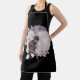 Apron with a watercolor painting of a black cat and a light purple and pink floral bouquet. Standing in front a a large full moon. Stylish and magical.
