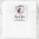 Thank You business stickers with a watercolor painting of a black cat and a light purple and pink floral bouquet. Standing in front a a large full moon. Stylish and magical.