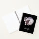 Spiral notebook with a watercolor painting of a black cat and a light purple and pink floral bouquet. Standing in front a a large full moon. Stylish and magical.