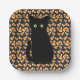 Black cat, Candy corn pattern, Halloween fun Paper Plate