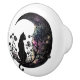 An elegant gothic style celestial moon floral black cat watercolor design ceramic pull knob. Featuring black and purple colour on a white background. Elevate your space with this unique cabinet furniture pull knobs!