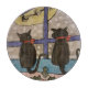 These two cute black cats have been sitting patiently on the windowsill for Santa to arrive. It is Christmas Eve and the snow is falling hard. The house is decked with holly and seasonal bells for the holidays. Then the cat's patience is rewarded as they spot Santa in his reindeer sleigh flying across the face or the shining full moon. This is a colorful, festive Christmas watercolor that will add a note of fun and brightness to your holiday decorations.