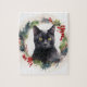 Black Cat Christmas Wreath Festive Kitten Jigsaw Puzzle