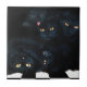 A group of black fluffy cats cuddling all together on a black and white tiled floor