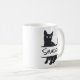 Enjoy your coffee, hot chocolate or tea in this adorable coffee mug featuring a black cat sitting with your kitty's name. It is so easy to make this mug your own. Simply select Personalise this Template and type in your sweet cat's name. It would even be a great gift for a friend or loved one who loves cats!