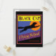 A custom postcard invitation with room for your custom text on the back, on the front it reads Black Cat Flying School with a magical black cat flying across a blue sky with an orange moon. Click Customise It to change fonts, sizing add text, even save your design for later.