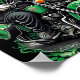 A furry friend behind the handlebars of a shiny green bike, wearing a green Saint Patrick's Day outfit that makes heads turn. The cat is dressed in a festive ensemble, complete with a green bow tie and a matching top hat that sits snugly atop their head. The outfit features intricate designs of shamrocks and leprechauns, making it clear that this cat is ready to celebrate Saint Patrick's Day in style.