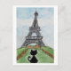 Black Cat Eiffel Tower Watercolour postcard