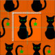 A silhouette cartoon of a black cat with green eyes against orange (the background colour can be changed). A green star hangs from the cat's tail.