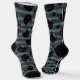 A Black And Grey Striped Crew Sock With Cute Black Cat Faces For Her