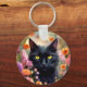 Black Cat Flowers Garden Cat 736 Key Ring