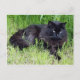 Black cat fluffy long hair feline regal proud postcard